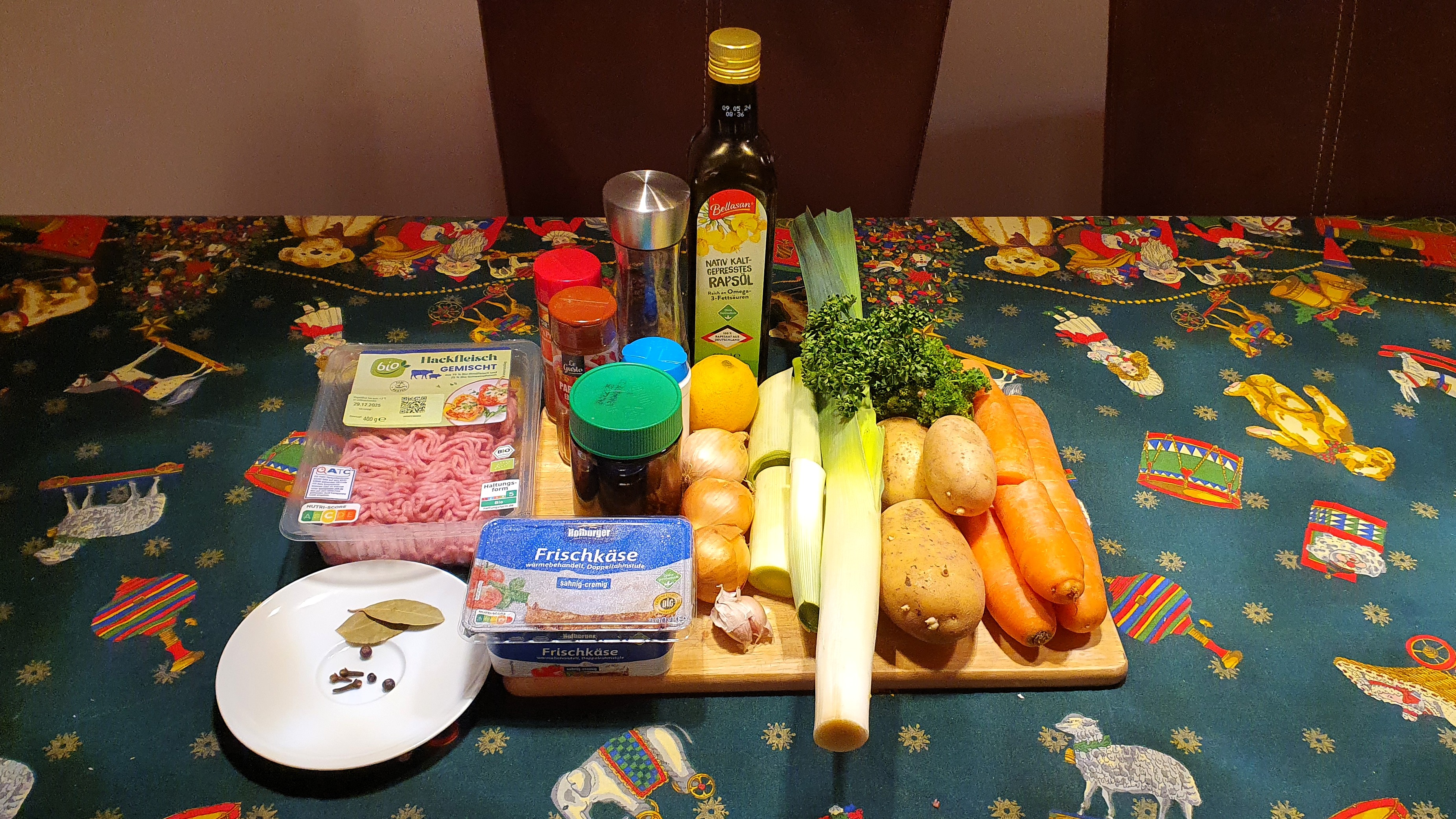 - 500 g Hackfleisch, halb & halb