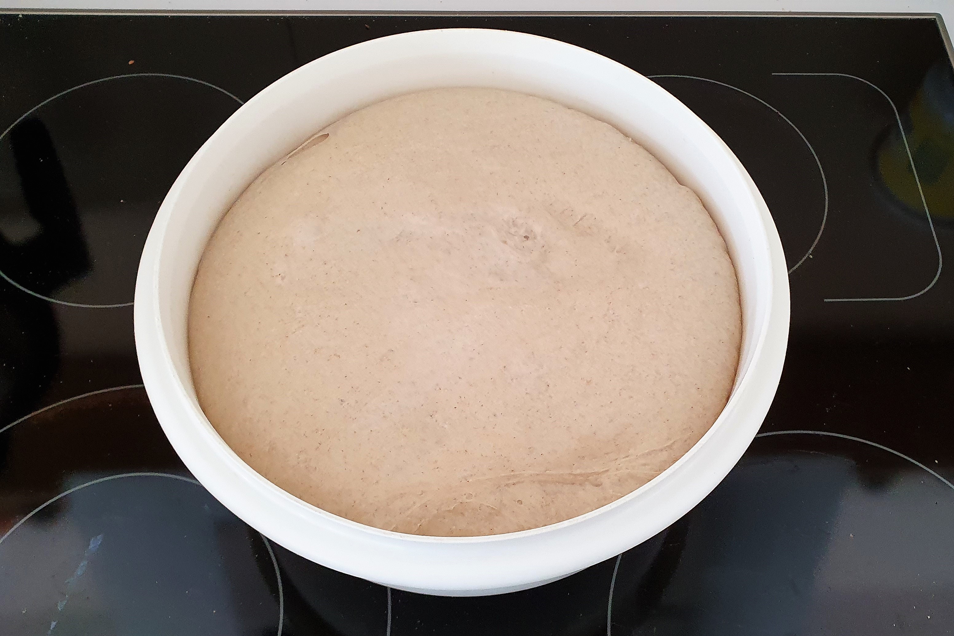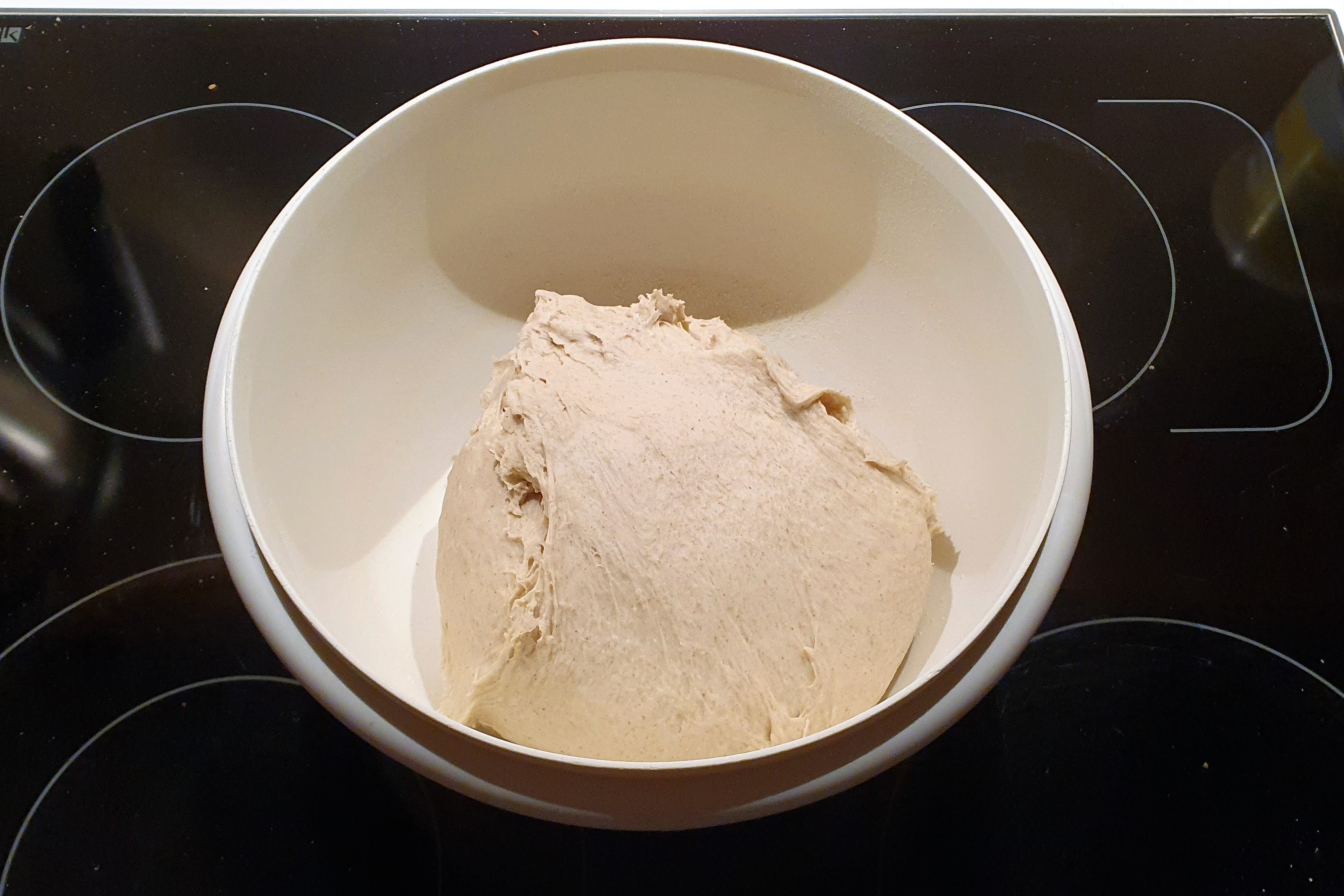 Am nächsten Morgen sollte sich das Volumen des Teigs deutlich vergrößert haben. Außerdem sollte er jetzt einigermaßen elastisch sein.