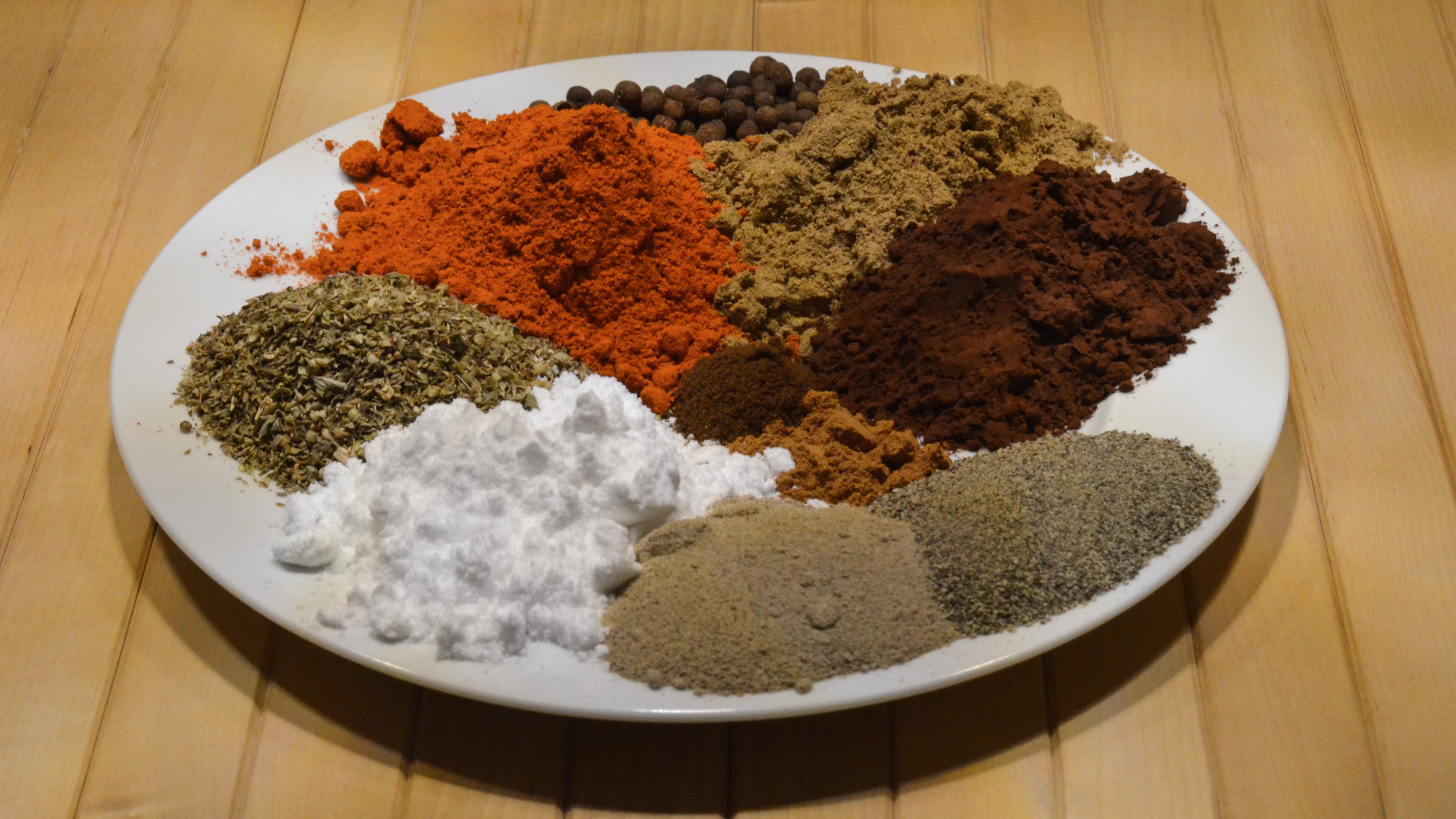 Gewürze in der Kaffeemühle mahlen und in ein dicht verschließbares Gefäß füllen.