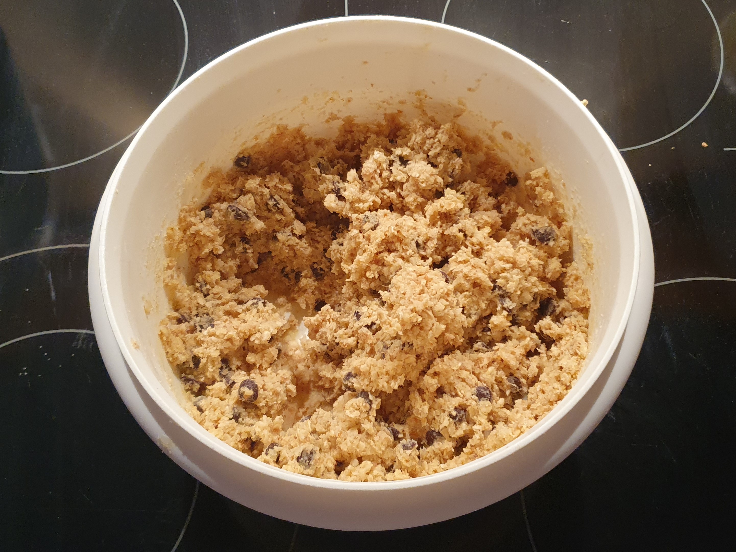 Für etwas mehr "öko" im Keks, kann ein Teil des Mehls vollkorn und ein Viertel der Haferflocken kernig sein.